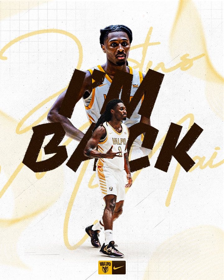 Following the next two hours the Valpo accounts posted that sophomore Justus McNair and freshman Rakim Chaney would both be returning to play alongside JT Pettigrew in the 2026-2027 season campaign.